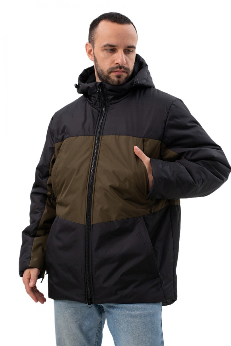 Куртка мужская демисезонная хаки с утеплённой подкладкой. Прямой силуэт, воротник стойка, капюшон несъемный.